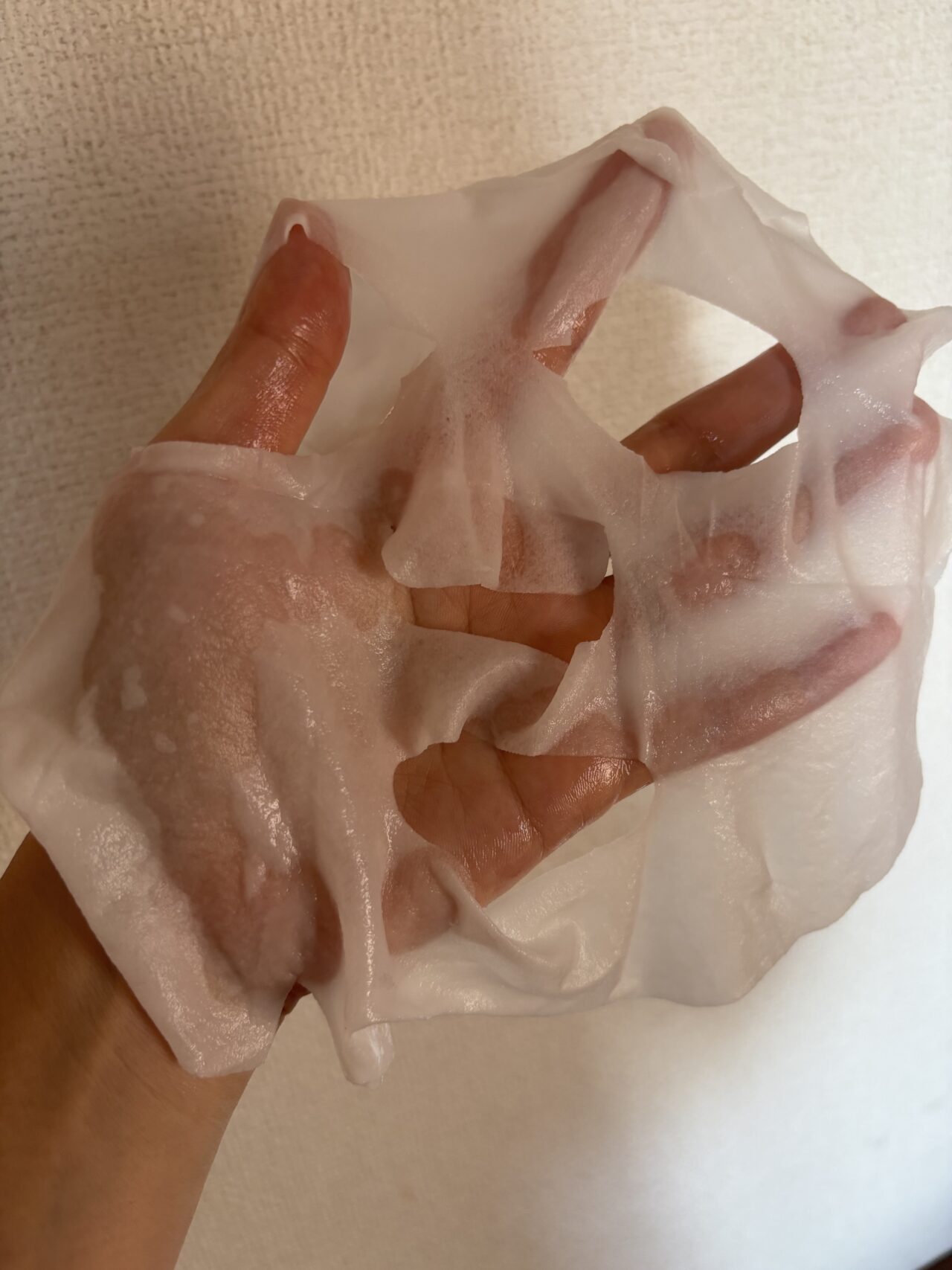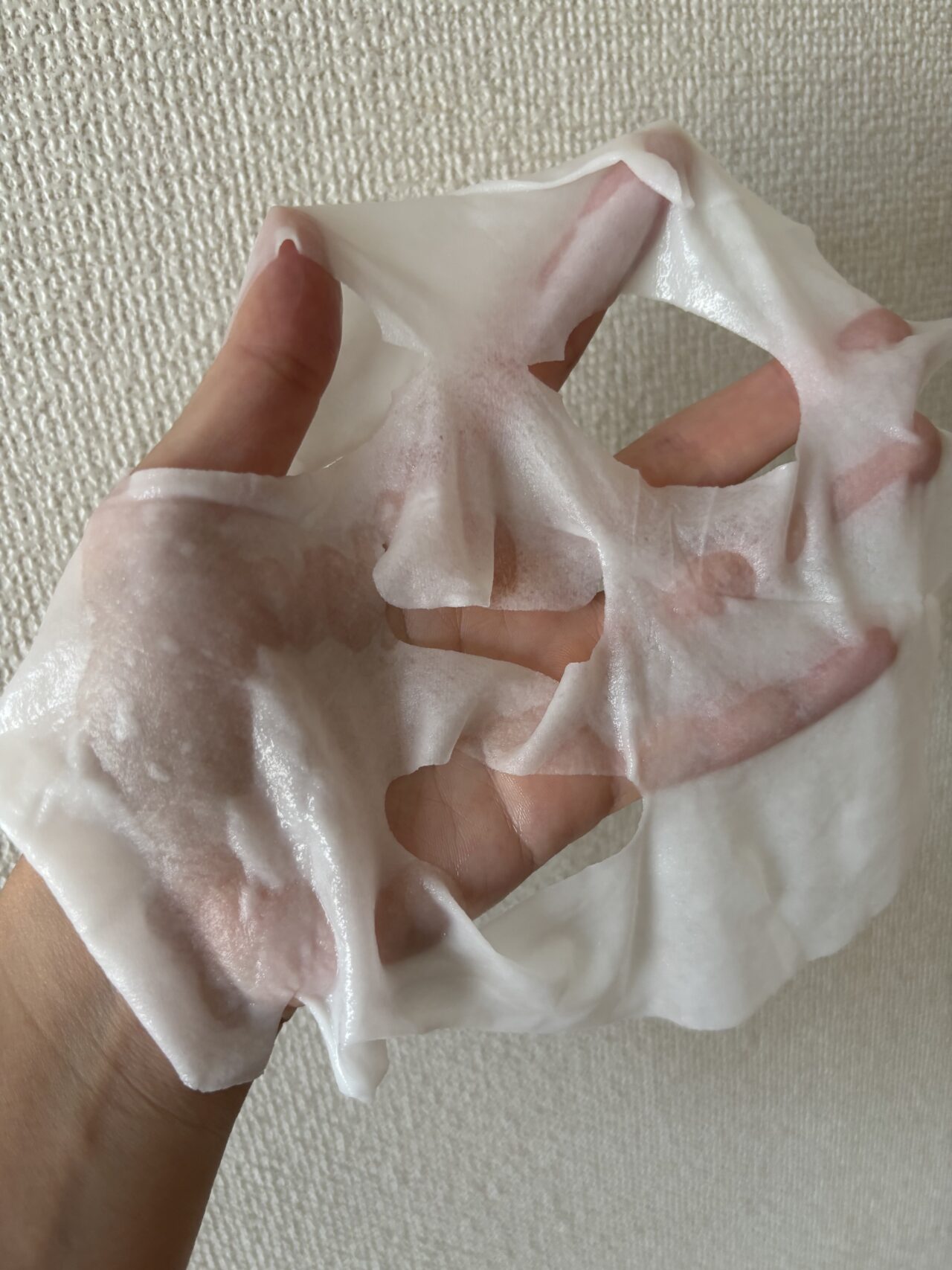 シートは広げにくいけど、液だれすることなく肌に密着する感じは好き❤15分経ってもまだシートが潤っている✨もっちり肌が柔らかくなります。
